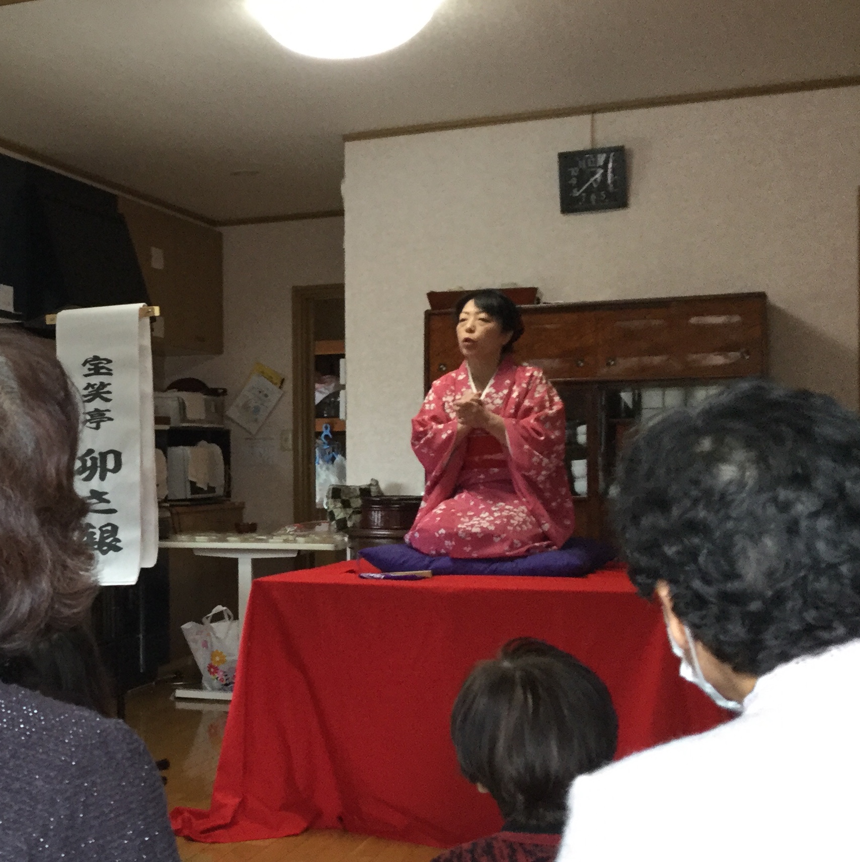 開口一番は、宝笑亭卯さ銀の「こうもり」です。ものすごく反応の良いお客様方で、まくらからどっかんどっかん大笑いしていただきました(*^^*)