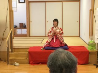 次は、JK落語家、熊水の「天狗裁き」です。マクラでは将来の旦那さん候補におじいちゃま方々から自己・他己推薦を頂きまして(^_^)v、本編落語に。本日はネタ下ろしとなりますが、八五郎の夢を巡る面白い噺に温かく、要所要所で大笑いしていただきました(^^)