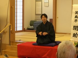 本日のトリは、間助代表の「猿後家」です。演目にちなんだ猿のマクラで大爆笑となり古典落語の世界へ誘います。後家さんを取り巻いてポンポンとリズミカルで勢いのある噺に大爆笑の一席となりました(^o^)/