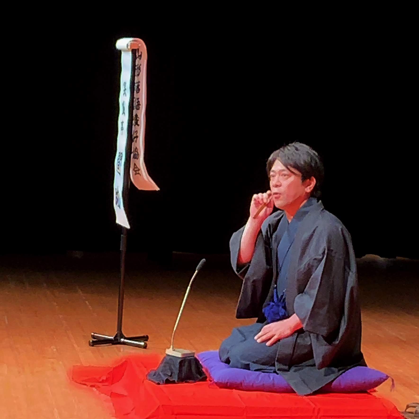 続いては私の『悋気の独楽』。皆さんに名前を憶えてもらえるように工夫を凝らしているのですが、今回もばっちり覚えて頂けたようでうれしい限りです。肝心の噺は女将さんのヤキモチをめぐる内容ですが、キャラの濃い登場人物が多いので、やっててとても楽しい噺です。ワオ!