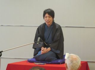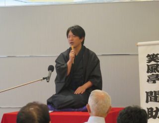 続いて、間助さんが引き続き高座に上がり、「つる」を演じました。マクラのつる小噺からお客様の反応が抜群!当会の活動をご存知の方も多く、また落語まつりにもご来場いただいたことのある方もおり、ホームグラウンドのような雰囲気での高座となりました。もちろん、ひとつひとつのくすぐりをしっかり拾っていただき、大爆笑の一席となりました(^^)