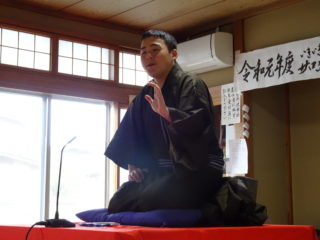 初っ端はわたくし間助の「つる」。古典落語ですが子供から大人まで楽しんでもらえるオモシロ分かりやすい演目です。鶴の恩返しの小噺から入る鉄板構成でのっけからたっぷりと笑っていただきました(*^^)v