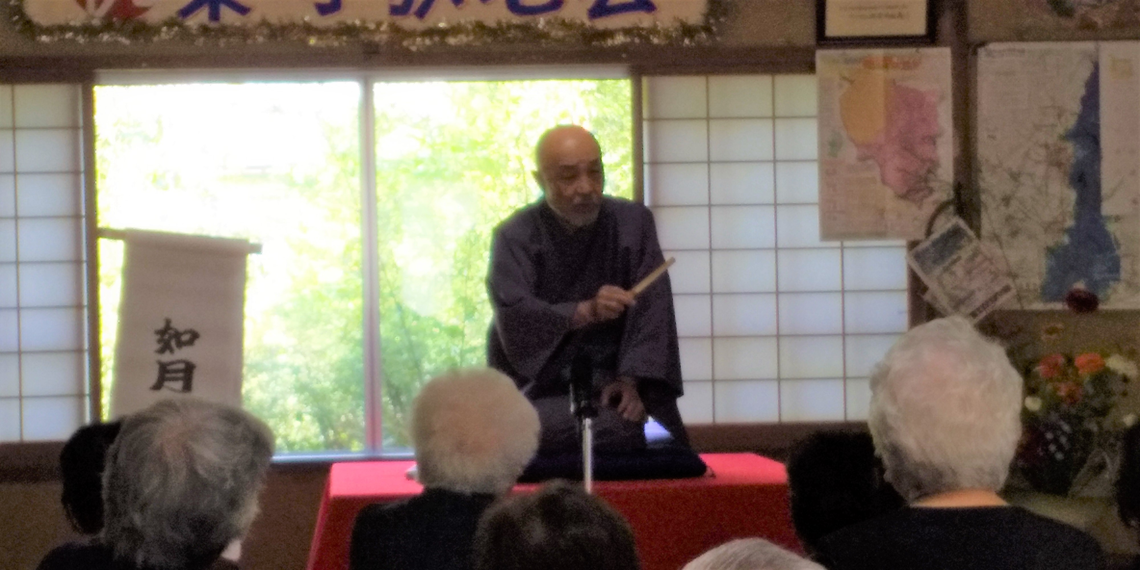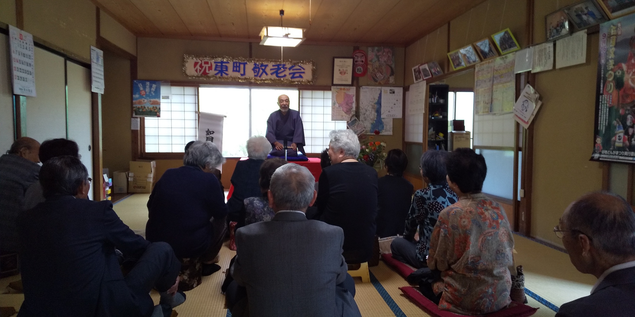 本日は河北町谷地東町敬老会にて落語会でした。なんと3年連続4回目とのことです。リピーターのお客様は特にありがたいですねえ(*^^*)。台風19号の影響も心配された中でしたが、始まってみれば台風一過の快晴となり、たいへんにお元気で芸達者な敬老会のおじい様、おばあ様、役員の方々、婦人会の方々約30名の方にお集まりいただき、満月&道楽の和尚コンビで明るい落語会となりましたよ。