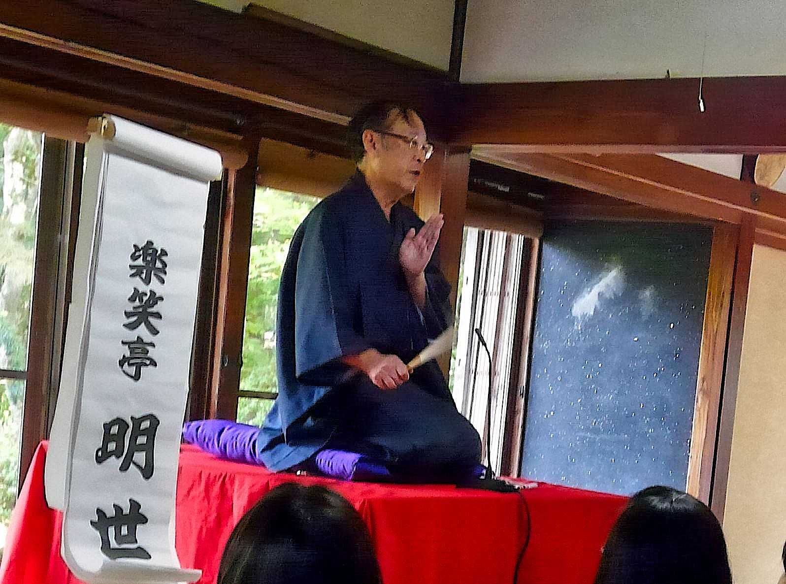 開口一番は、楽笑亭明世さんの「今様小言念仏」です。マクラの小噺で惹きつけ、世相を反映したぼやきに、開口一番とは思えない大盛り上がり。爆笑の連続で、温めるというよりホットな状態にしてお次と交代です。それにしても反応が良すぎるとも思えるお客様でした(知的レベルがすごく高い!)。(*^^)v