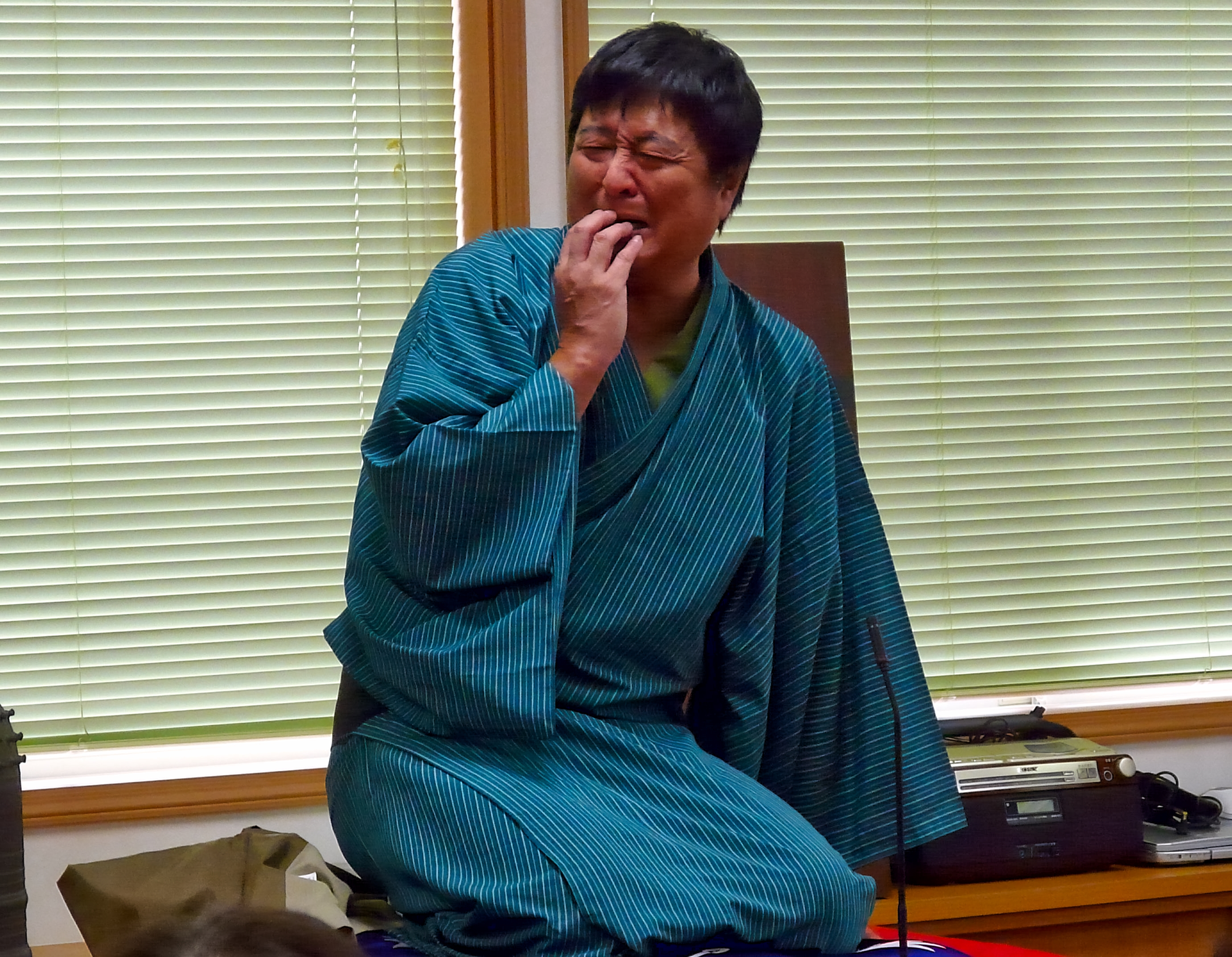 本日は、山形市は東町にあります「ふすま同窓会館」という、山形大学がまだ旧制高校だった頃の資料が残る文化の香り高い会場での落語会でした。毎年のように招いて下さるありがたいさわやかサロンです。そこに分福亭丘んさん、如月家道楽さん、山彦亭虎之輔さん、そして私・天空亭魚々太郎(天空齋魚々太)の4人(5人?)がお邪魔し、20名弱の大変反応がよいお客様に落語を披露してきましたヨ。(#^^#)