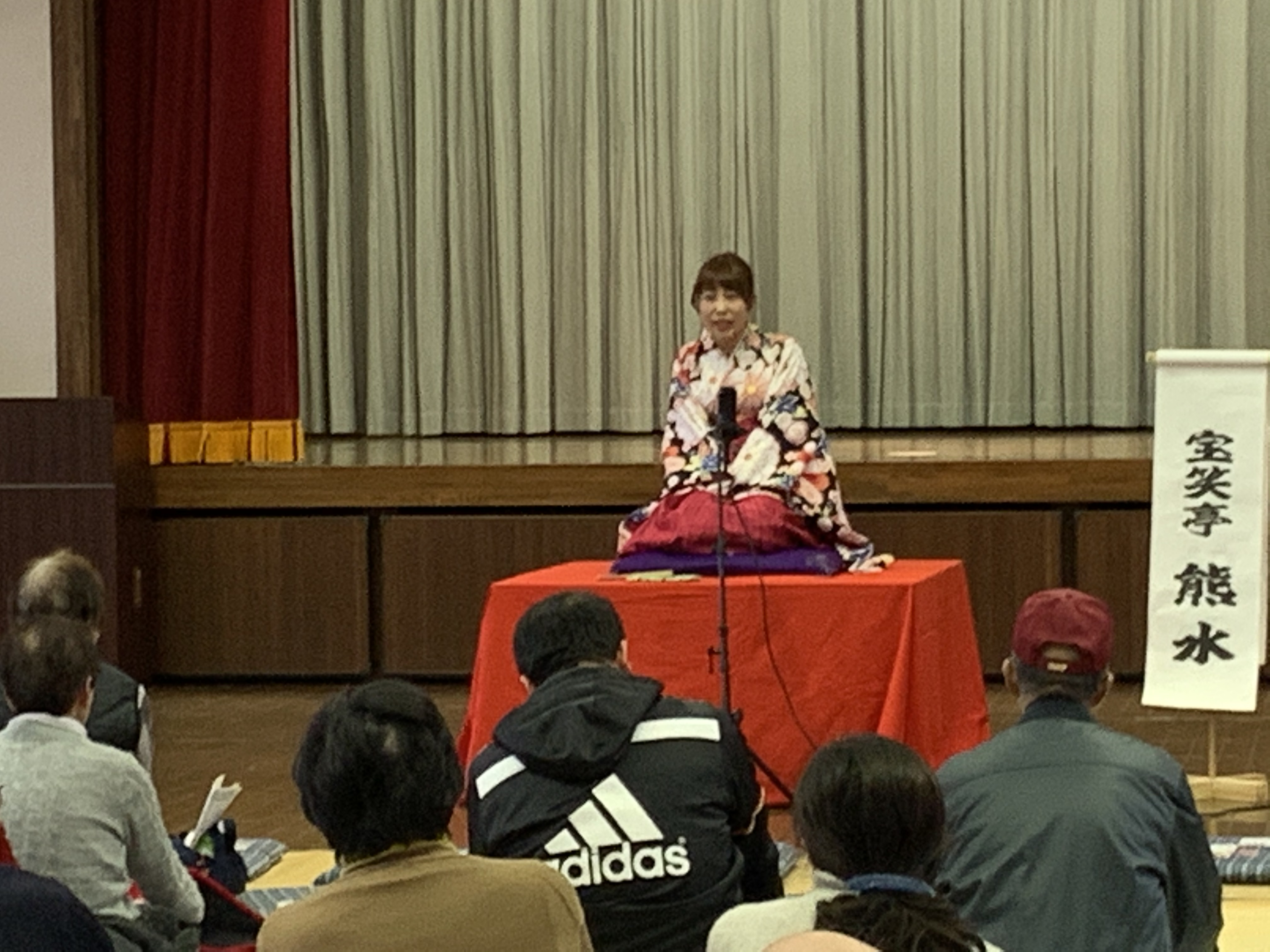 本日は、鶴岡市は黄金コミュニティセンターで行われました「黄金むらづくりのつどい」に伺い、満願亭珍逸さん、宝笑亭熊水、私宝笑亭卯さ銀の3名で落語を披露させていただきました。むらづくりのつどいには2回目の出前となり、宝笑亭には昨年秋の成人講座にお邪魔したご縁でお声掛けくださり温かく迎えていただきました。終日雨降りだったもの会場内には熱気が溢れ、100名もの大変反応のよい素晴らしいお客様に落語と笑いを届けて参りました。(*^_^*)