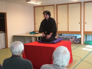 二席目の間助さんは得意の根多で皆様に大喜びして頂きました。その後はアンコールの声に応えて5分間でもう一席お聴き頂きました。明るく元気な皆様のお陰もあり、楽しい時間を過ごすことができました。間助さんと註馬は10年以上何度も一緒に出前寄席をやってきて、互いに勝手知ったる仲です。今回も存分に楽しんで頂けたのかな、と思います。