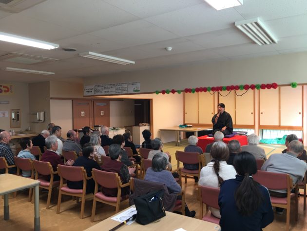 雨水も過ぎて春の陽射しに包まれた2月21日の昼下がり、イオン山形南に程近い若宮病院内の「はつらつデイケア」で落語会を開催させて頂きました。若宮病院では認知症などにも対応したデイサービスを敷地内の別棟で行っているとのことで、今回お邪魔したデイケアは高齢者の皆様を主な対象にしています。昨今は健康寿命が重要視されており、落語に触れることでお役に立てればと思っております。