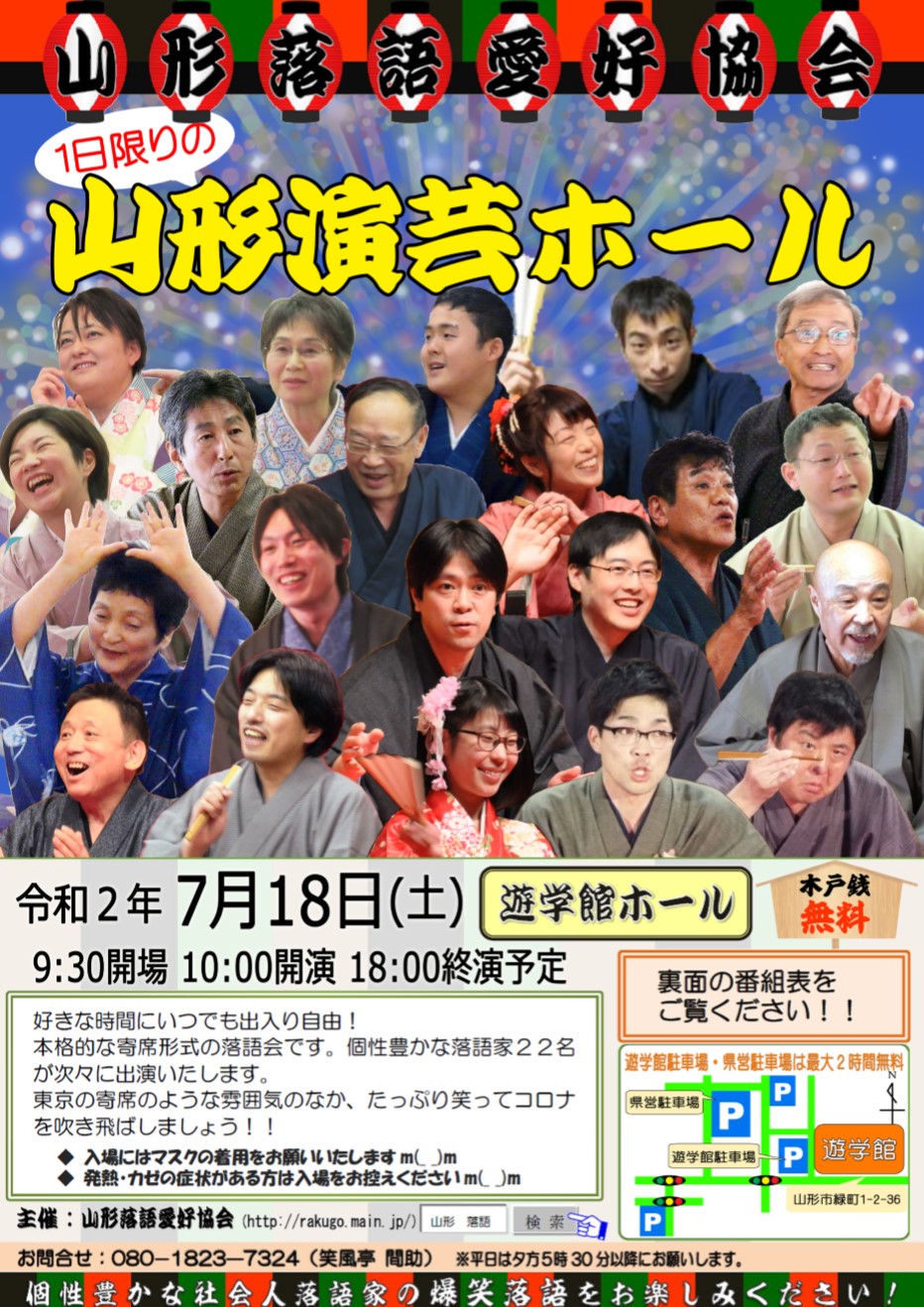 7/18(土)10:00〜18:00 遊学館ホールにて、総勢22名のアマチュア落語家が出演する落語イベントを開催いたします!
