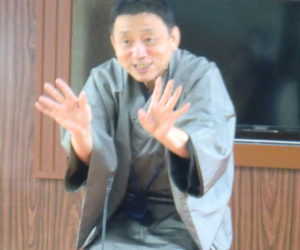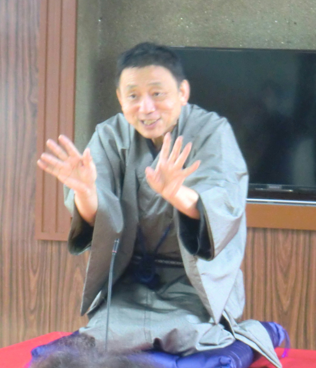 開口一番は虎之輔です。最初に「秋にまつわる小噺」として、米大リーグで「投げる」「打つ」の二刀流で大活躍している大谷翔平選手をネタにした小噺を振ったところ、大いに笑ってもらいました。その勢いのまま、寒くなって来ると聞きたくなる演目の「時そば」に突入。そばっくいの江戸っ子の「おまえ、何でも知ってやんだね」等の江戸弁を、お客さんがしっかりと聞いてくれ、「おう、『知ってやんだね』なて…」と喜んでくれている様子が、こちらにも伝わってきました。おかげで、最後まで楽しく演じきることができ、お後と交代です(^_-)-☆