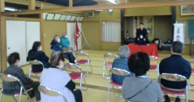 冷たい雨が朝から降り続き、冬のように低い気温となった10月7日(金曜日)。山形市村木沢の悪戸公民館で開催された「悪戸いきいきサロン~落語会」に、山形落語愛好協会の下記の3名がお邪魔して来ました。同公民館での落語会に当会の噺家がお呼ばれするのは、今年の7月に続いて、今回が二度目。ご来場いただいた10数名の皆様に、当会の落語三席で存分にお楽しみいただきましたよ(^_-)-☆