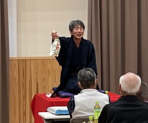 本日は大江町中央公民館にて、村山グラウンドゴルフ協会様のご依頼で落語を披露させていただきました。講義パートと大会パートの間、お昼前のひとときを落語の時間に充てていただき、お楽しみいただきましたよ!