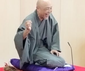 そして、演目の「芋煮」に突入。「え、そんな新作落語あるの?」と思われた落語通の皆さん、新作落語ではありませんよ(^^♪ 古典落語の「味噌豆」に出てくる「味噌豆」を、季節に合わせて山形のソールフードである「芋煮」に変えただけの定番の一席でした。道楽さんは小僧の定吉が「芋煮」を持って、はばかりに向かうところで、「おいしい芋煮、ヘイヘイ」とラップ調の歌まがいにしたノリノリのセリフで演じ、会場を大いに沸かせましたよ( ^^) _U~~