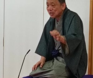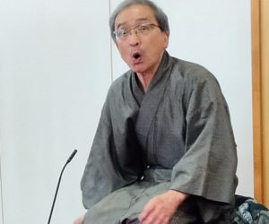 そして、トリは虎之輔が務めさせてもらいました。前のお二人がたっぷりと場をあたためてくれたので、「高齢者ネタ」の短い小噺を幾つかかけた後は、早々に演目の『三方一両損』に突入しました。金に執着するお代官と越後屋を尻目に、宵越しの金は持たない江戸っ子の心意気と、御存知、江戸南町奉行所の大岡越前守の鮮やかなお裁き。江戸時代にタイムスリップして、大いに楽しんでいただいたのではないでしょうか。ほとんど女性の今日のお客様は、笑いどころを外さず、ここぞというところで笑い声を響かせてくれ、無事にお開きを迎えましたよ( ^^) _U~~