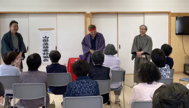 若葉が目にしみる頃を迎えた5月15日(水)、山形市青田の青田集会所で開かれた「青田福祉協力員会~落語会」に、笑望亭半生さんと、如月家道楽さんと、私、山彦亭虎之輔の三名がお邪魔して来ました。こちらのいきいきサロンに山形落語愛好協会がお呼ばれするのは久しぶりとのことでしたが、午前10時から11時15分までの75分間、和気あいあいとした雰囲気の中、約40名のノリのいいお客さんに、当会の落語三席でたっぷりと楽しんでいただきましたよ!!(^^)!
