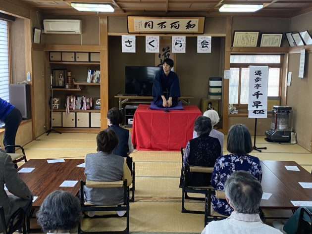 最初から最後まで、暖かい雰囲気の中、演者一同頑張って演じ切ることができました。お寿司やお菓子などを頂戴し、ありがとうございました。泉町1区さくら会にはこれまでも何回かお招きいただいており、私たちもホームグランドのような感じで落語をやることができる場所です。またお会いできることを楽しみにしております。