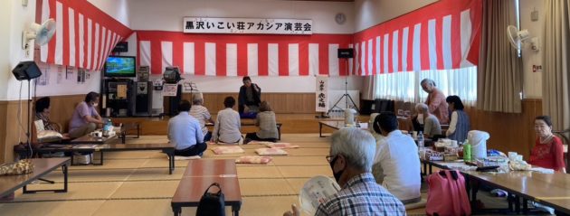 「黒沢いこい荘アカシア演芸会」のスタッフの皆様、そしてお客さまの皆様、本日はまことにありがとうございました。また、皆様とお会いできることを楽しみにしています。 【山彦亭 虎之輔】