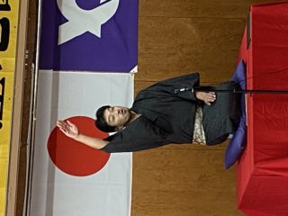 まずは註馬さんの登場です。もともと高座に上がる予定ではありませんでしたが、急遽一席お喋りしていただきました。ネタはお馴染み「寿限無」です。半年ぶりの高座でしたが、言いたてを、澱みなく、何度も話すところはさすがです。会場大盛り上がりでお後と交代です。