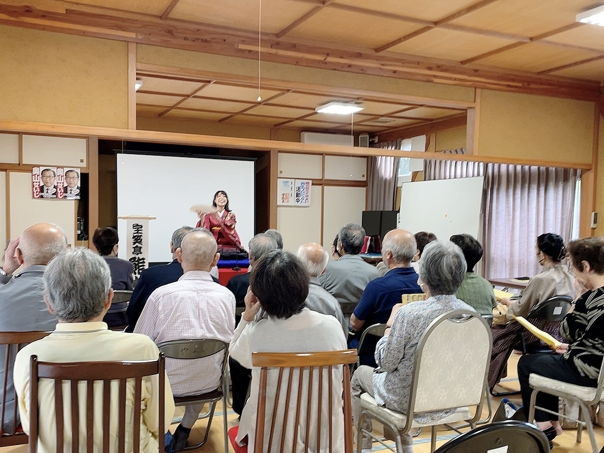 本日は、山形市のやよい集会所で開催された「やよい町内会 敬老会」の「やよい寄席」に宝笑亭熊水、宝笑亭卯さ銀の二人でお伺いしてきました。4年振り、2回目となり、60名ほどお集まりの皆様に落語と笑いを届けて参りました。