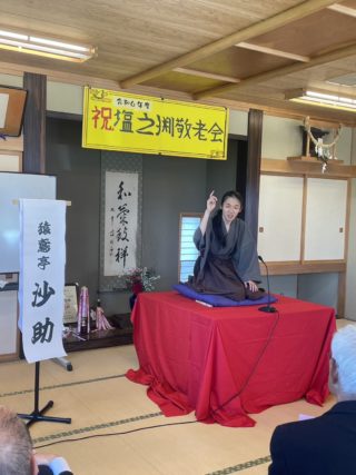 朝晩は秋らしいけれど、日中お日様が出るとまだまだ汗ばむ陽気です。本日10/5は、河北町の塩之渕地区の敬老会にお呼ばれして、落語を披露させていただきました。お伺いしたのは、Sくん改め猿鳶亭沙助くん、遊歩亭千早くんの山大落研コンビと私、錯乱坊双極の3名です。20人を超えるお客様にたっぷり楽しんでいただきました。