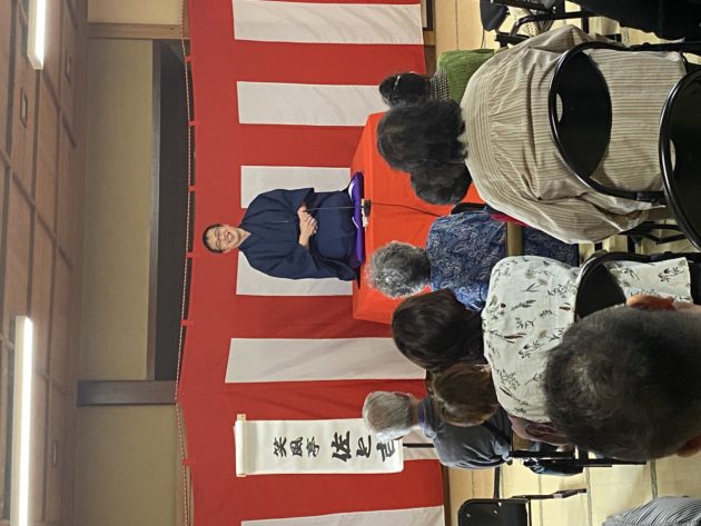 雨の予報だったと思ったのに、しっかり晴れて落語日和となりました。本日10/19、昨年に引き続き山形市の長町7区の皆さんに落語を披露する機会をいただきました。7区の秋祭りのイベントとして、当会福来助さんに企画していただきました。本日は笑風亭佐と吉代表、楽笑亭明世さん、笑風亭間助顧問、私、錯乱坊双極の精鋭四人組でお伺い。たっぷり笑っていただきました。