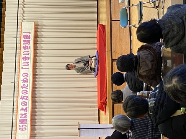 本格的な雪です。そして今日はクリスマスイブ。ホワイトクリスマスとなりました。そんな中、天童の南部社会福祉協議会さまからお招きをいただき、落語を披露させていただきました。司会の方にもご紹介いただきましたが、山形落語愛好協会の噺家の中から、選りすぐりの3名でお伺い。笑門亭福来助さん、遊歩亭千早くん、錯乱坊双極の登場です。初めてでしたが、大いに盛り上がり、暖かな落語会となりました。