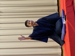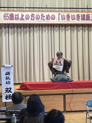 そして、最後に控えしは、千早くんです。若者代表ということで、演ずる噺も若旦那が活躍する「紙屑屋」。ゴミの分別のお仕事を、あっちこっち脇道に外れながら、なんとなくやっている若旦那。髪を切った千早くんが生き生きと演ずる一席で、会場のおじいちゃん、おばあちゃんも大笑い。拍手喝采でお開きとなりました。