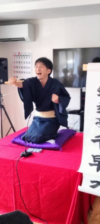 初っ端出て参りましたのは、千早です。小ボケを入れながら顔と名前を覚えていただき、流れでしれっと噺に入りました。この導入を如何に自然にできるかが演者としての小慣れ感に繋がると思ってるので、まだまだ余地があるなという塩梅です。選んだ噺は「一目上がり」。解説調のセリフが多いため、説教くさくなりがちな噺ですが、一言一言感心しながら聞いていただけているのを感じました。それでいてギャグは一つも溢さずに笑ってくださるという良いお客さんっぷり。客席を楽しませるつもりが、こちらの方が気持ちよくなってしまったところでお後と交代です。