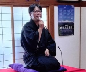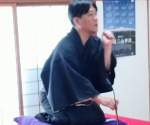 梅雨の合間に、からりと晴れ渡った青空が広がった6月28日(土)。熊野神社(山形市六日町)の社務所で開催された「六日町3区町内会の落語会」にお伺いしました。こちらにお伺いするのは今回が初めてですが、約20名の皆さまに午前10時から11時までの60分間、当会の落語三席で楽しんでいただきましたよ!!(^^)!