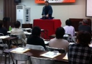 まずは、間助師匠の「親の顔」。とても前座にはもったいない演目です。やっぱり勢いが違いますね~。さすが師匠!しっかり参加者の心をつかみ、講演会の緊張した雰囲気を和ませていました。私も、「親の顔」覚えようかな・・・羨ましい(^^)