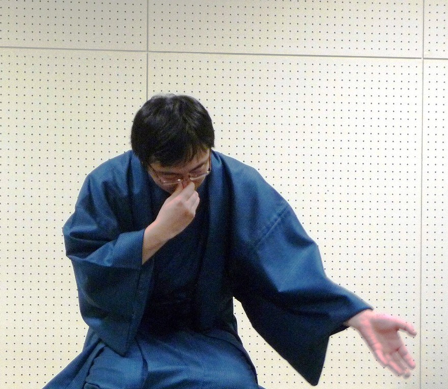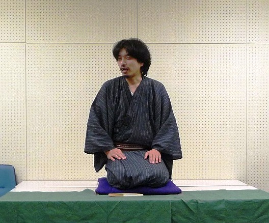 註馬さんの「たけのこ」は、短くて面白い噺、とのことで、内容については「いいと思います!」とのコメントをいただくことができました(*^^)v あとは所作の部分で上下(かみしも)の付け方についてのご指導をいただきました。会場の大きさによっても視線の持って行きかたは違うということで、視線の使い方、動かし方などについてのアドバイスをいただきました。