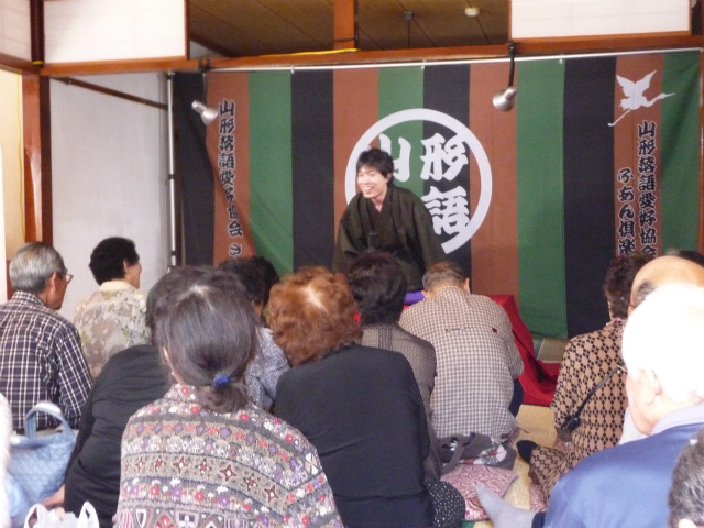 開口一番は、おすしさんの「つる」です。まさに古典らしい古典ですが、しっかり練習しているのが伝わってきました。肘折温泉名物の「肘折カルデラサイダー」ネタをおりまぜてのマクラや、相変わらずのテンポが良い語り口で、のっけからお客さんの心をわしづかみしてました(^^)