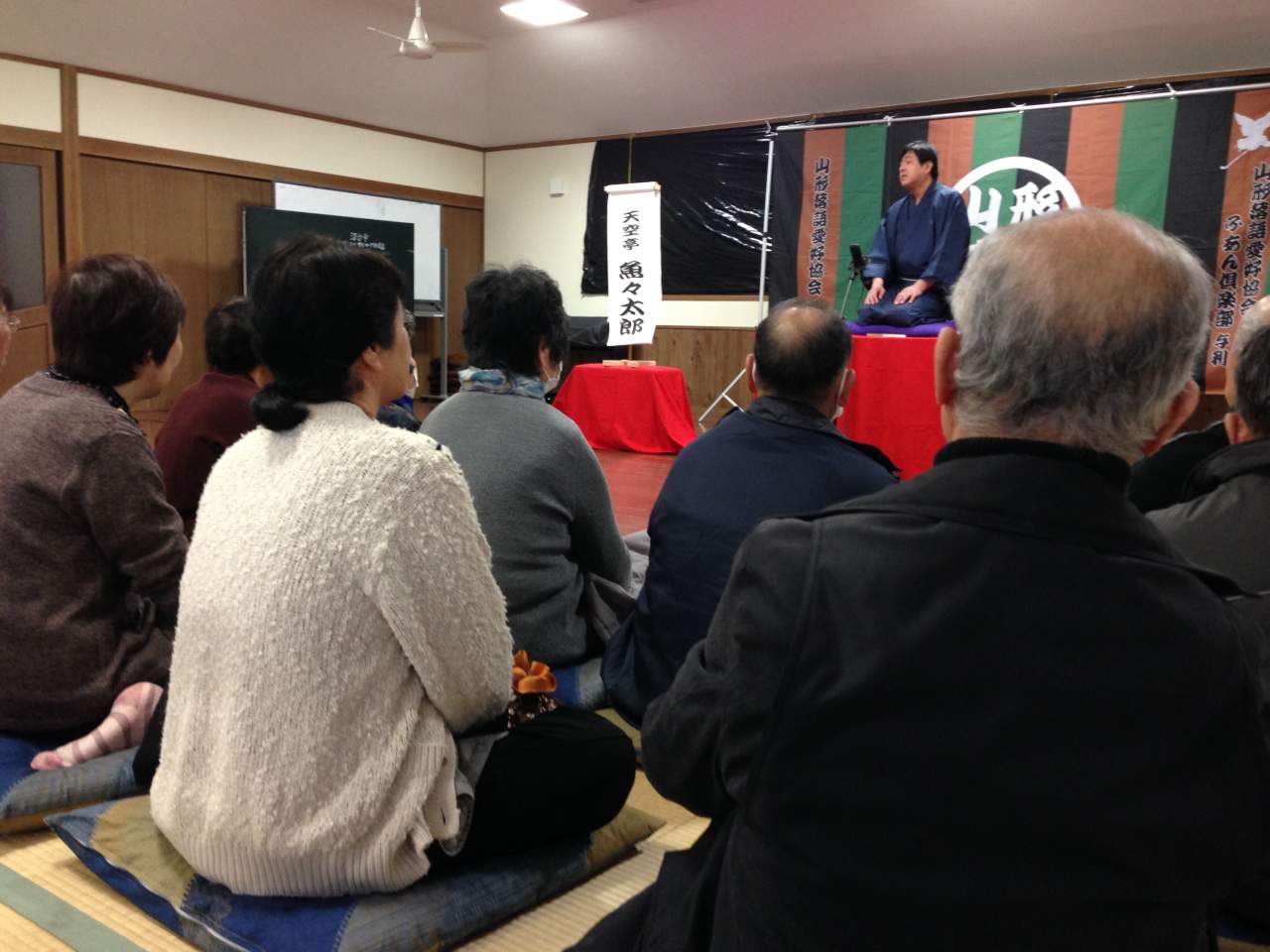 今日は大蔵村教育委員会の主催イベントということで南山交流センターにおじゃましました(*^_^*) 送迎バスで村中からたくさんの方々に集まっていただいて、2時間たっぷりと落語会(*^_^*) 笑って笑って心身ともに健康になってもらうべく、噺家4名&演目も豪華ラインナップの内容で高座に臨ませていただきましたよ(*^^)v