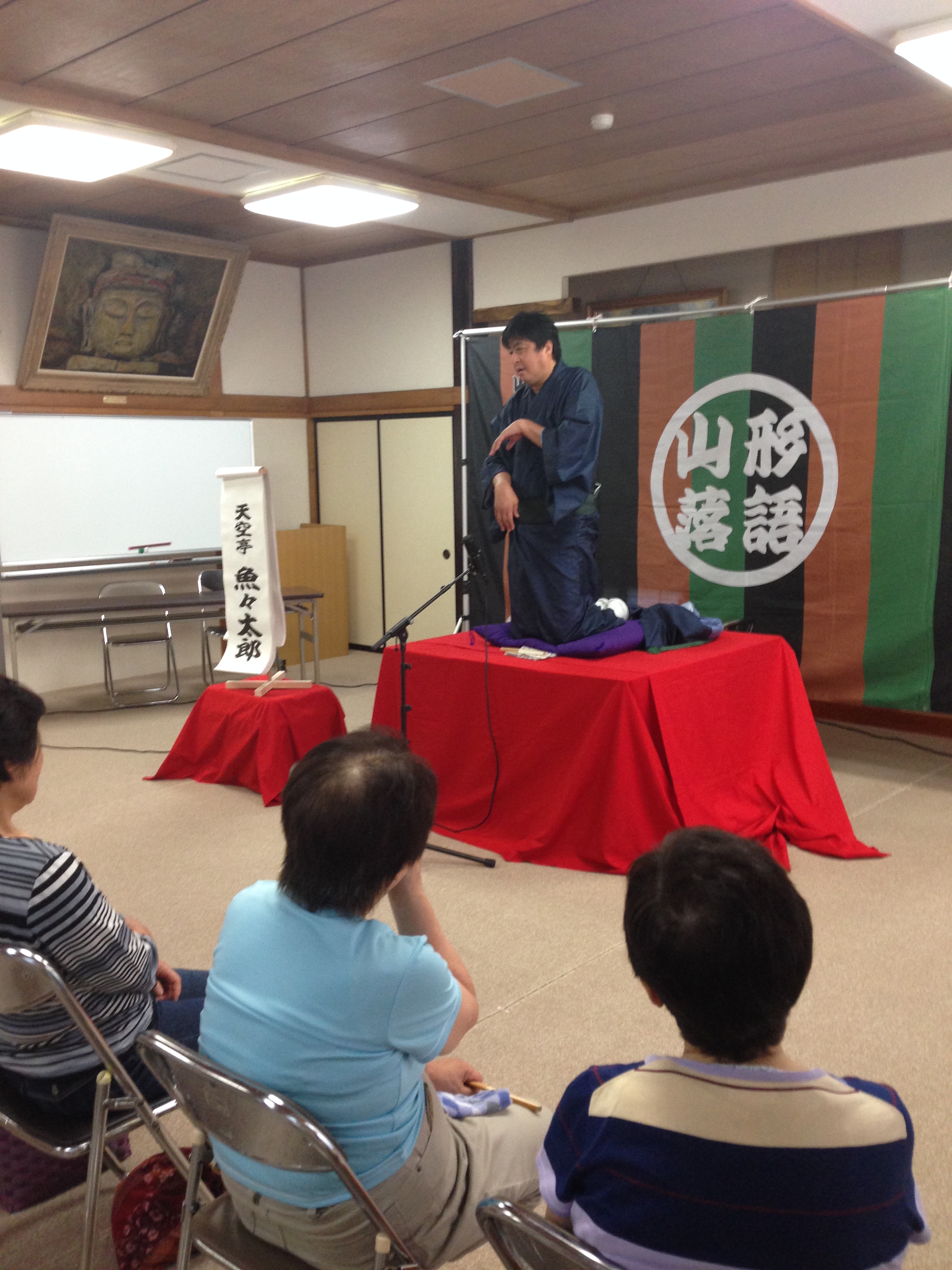 トリの魚々太郎さんは「お菊の皿」。大変暑い中で、こちらも動きの激しい演目となり、更にはダブルヘッダーということで疲れが心配でしたが、一切心配無用の大爆笑高座となりました(*^_^*)終演後のご挨拶でも盛大な拍手を頂くことができました(*^_^*)