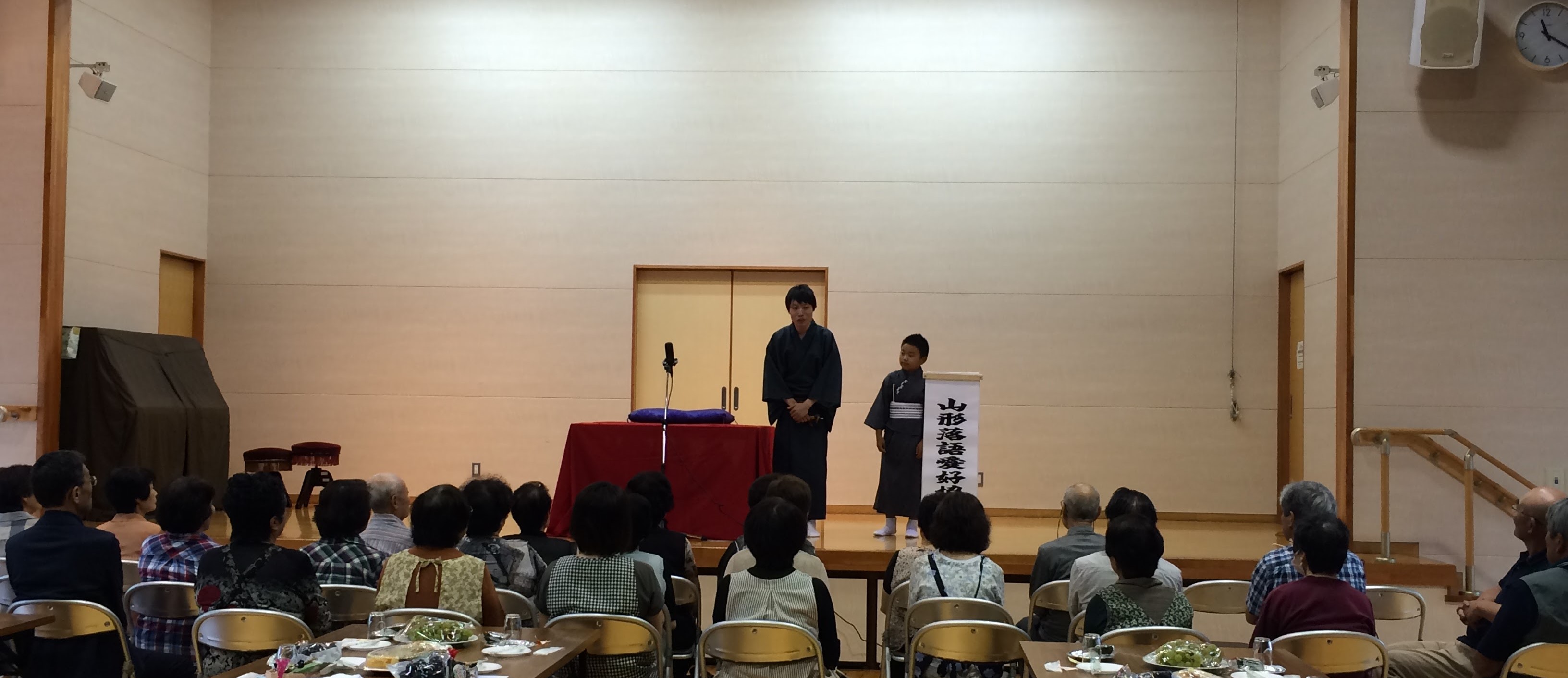 本日は鈴川コミュニティセンターにて、鈴川地区沼の辺町内会敬老会のアトラクションとして落語を披露させていただきました。とてもよく笑ってくださるあたたかいお客様の前で、私恋之介と本日が2度目の高座、笑多くんの2名でお伺いして参りましたよ(^^)