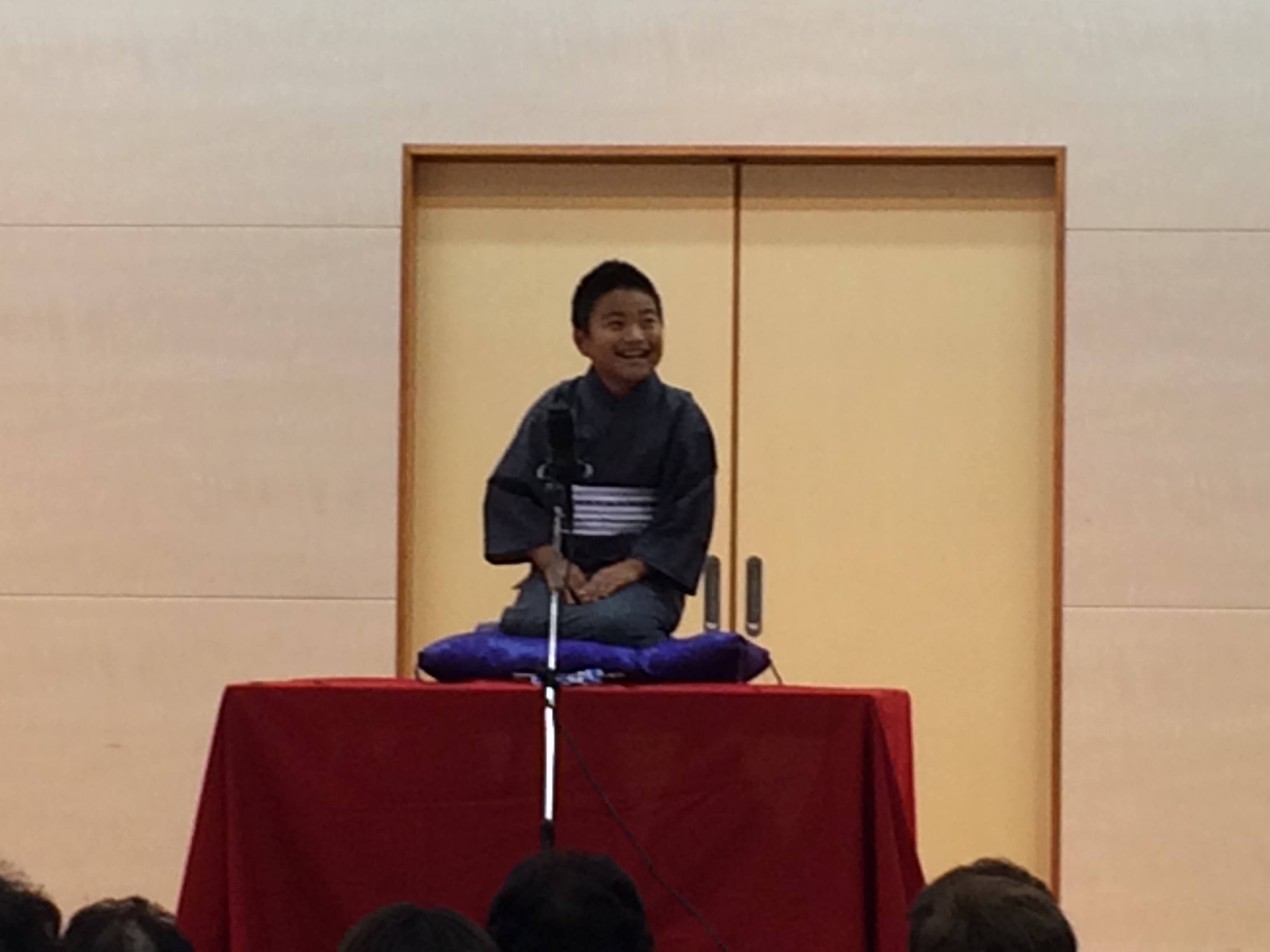 まず二人で並んで挨拶した後、開口一番は笑多君の「初天神」です。現役小学生がやる初天神はとってもリアルで、くすぐりのひとつひとつがとても可笑しく、大爆笑の一席となりました。団子の蜜をすするところなどはもう慣れたもので、上手さと面白さが同時に味わえるとても楽しい高座でございました(^^)