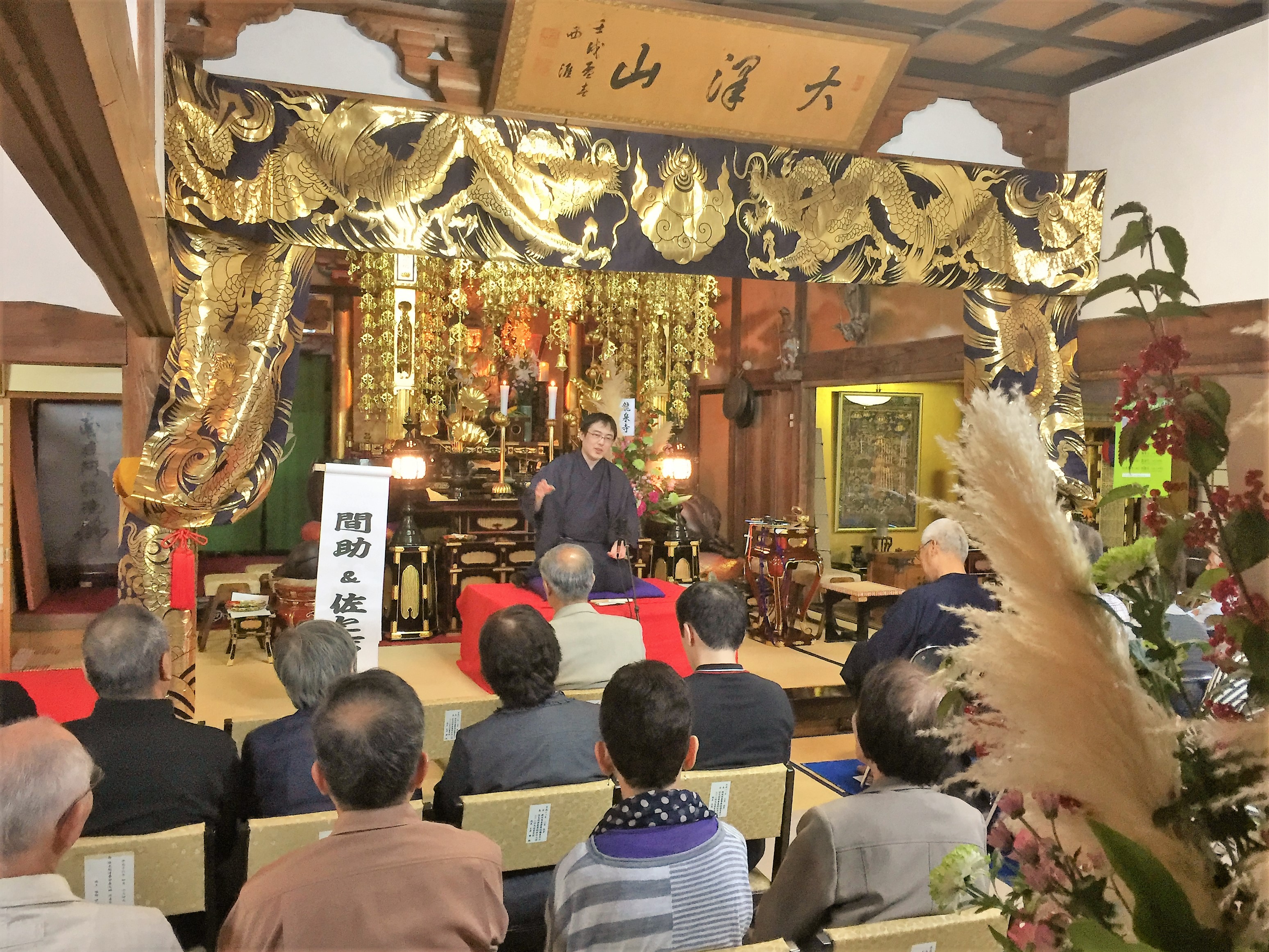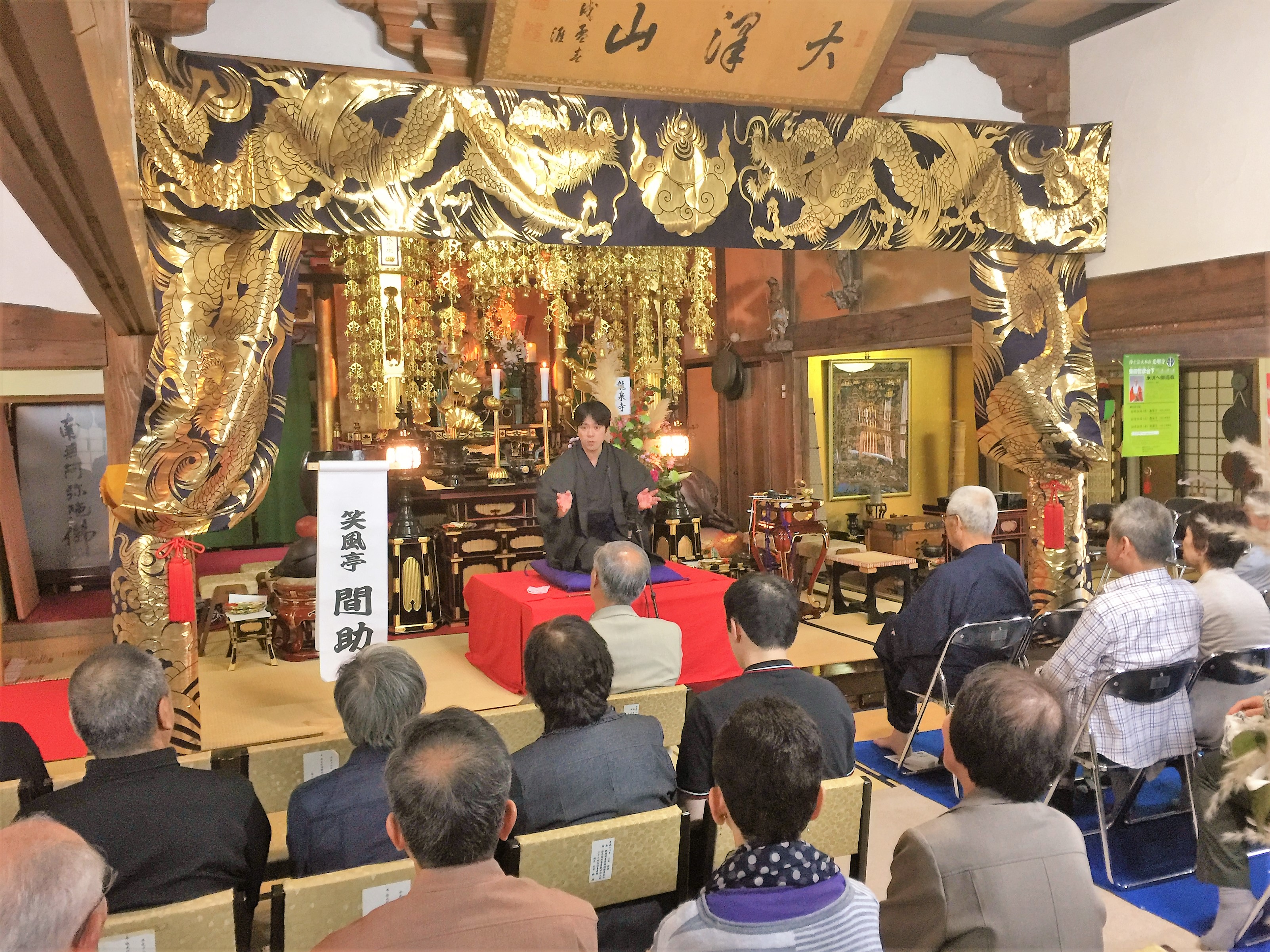 今日は、米沢市にある龍泉寺さんのお施餓鬼におじゃましました。龍泉寺さんは大変由緒のあるお寺さんで、お伺いするのは昨年に続いて2回目になります。間助&佐と吉の爆笑コンビで笑いと健康をテーマに演じさせていただきましたよ(#^.^#)