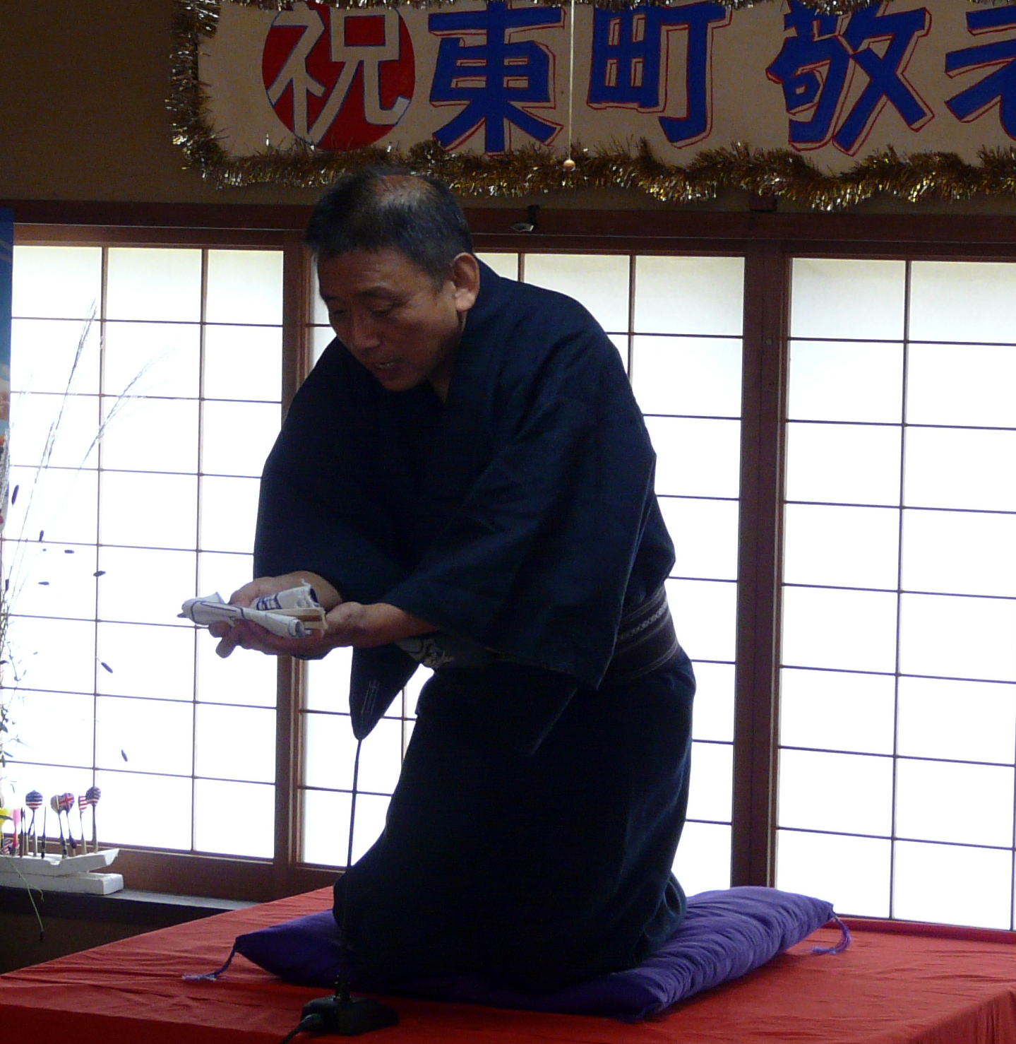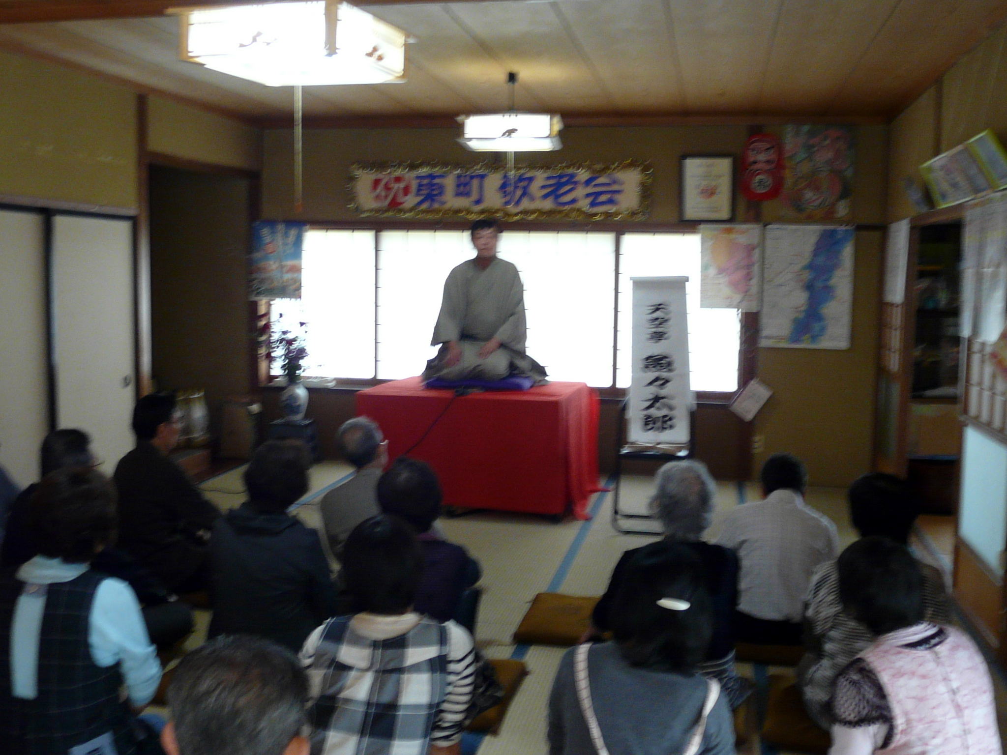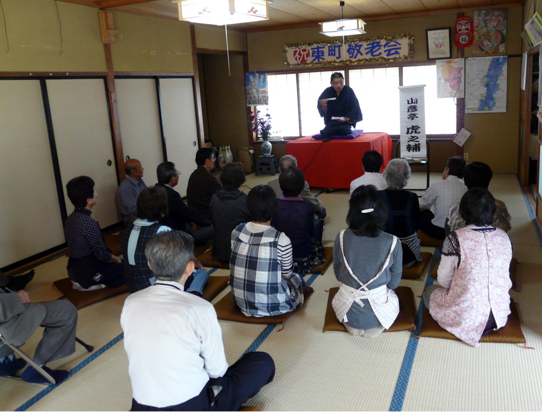 本日は、河北町は谷地の東町町内会の敬老会にて、山彦亭虎之輔さんと、私、天空亭魚々太郎の2人で落語を披露してきましたよ。絶好の敬老会日和、すがすがしい秋晴れが広がり、身も心も軽くお邪魔してきましたよ。(*^_^*)