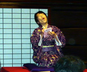 開口一番は宝笑亭卯さ銀さんの「代脈」です。柔らかい笑いが流れる女性が演じるにふさわしい落語だと思います。山形弁を交えたので親しみやすく、華やかな着物姿の愛嬌たっぷりの口演に、お客様は終始上品なニコニコ顔。時に大きな笑い声が起き、場はほっかほかに温まりましたヨ!(^_^)v