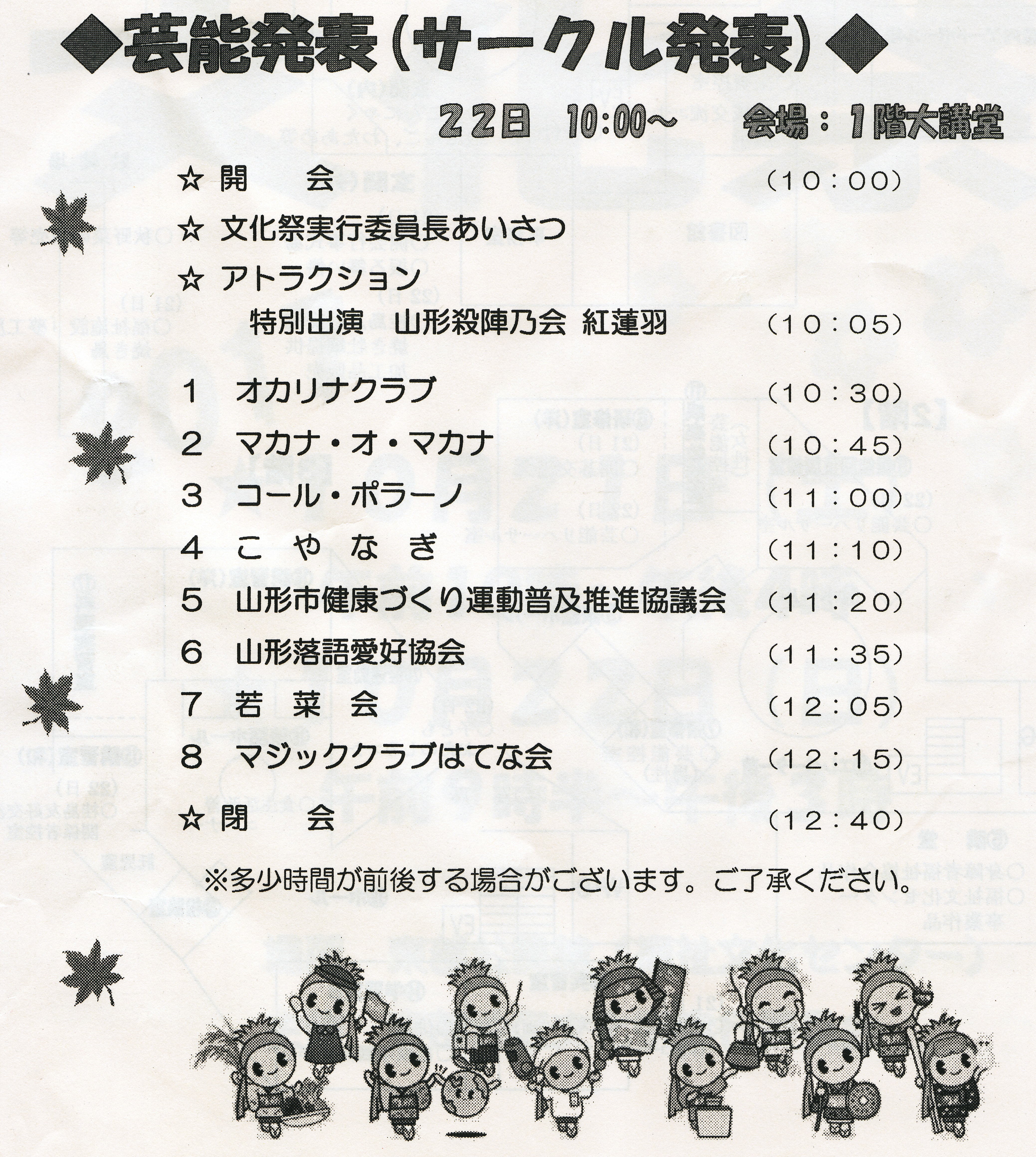 本日は、いつも我が落語愛好協会が勉強会を開いている山形市は東部公民館の第36回文化祭にて、間助代表と私、天空亭魚々太郎の2人で落語を披露して参りましたヨ。