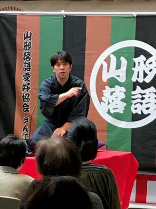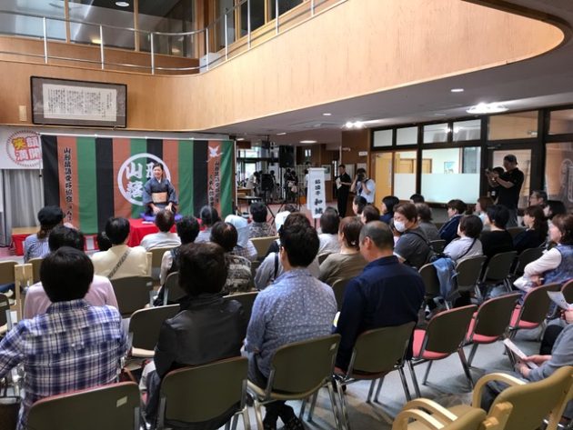 2本目は、わたくし間助の「カラオケ病院」。今回はMC兼パフォーマー?の「ミッチーチェン」さんの物まねと山形弁ラップを挟んでます。大音量の賑やかな出しものの後で、いろいろと迷いましたが、あえて賑やかめな演目をチョイス。お客さんを落語の雰囲気に引き戻し、しっかりと笑っていただくことができました(*^^)v