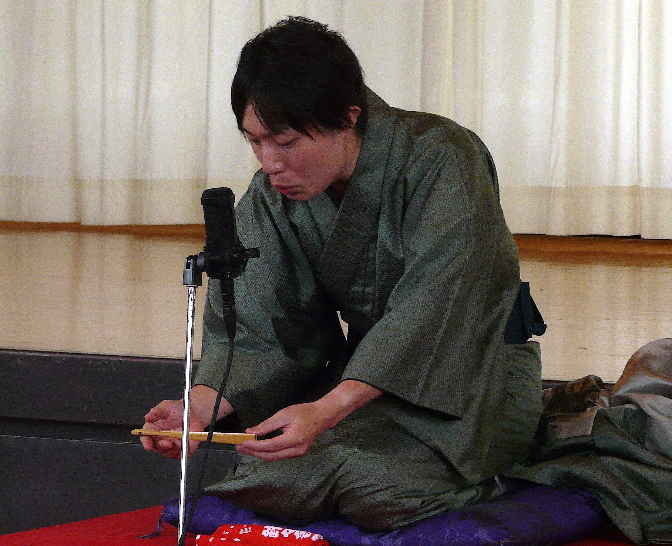 次は、浅草亭恋之介さんの「一目上がり」です。知的な香り漂う演目ですが、さすがは学校というやや高い敷居をまたいで聴いて下さったお客様です。終始笑い声が絶えず、大いに楽しんで聴いて下さいました。(^o^)