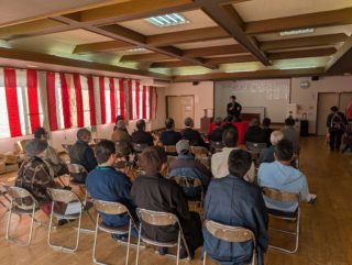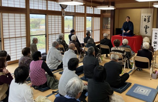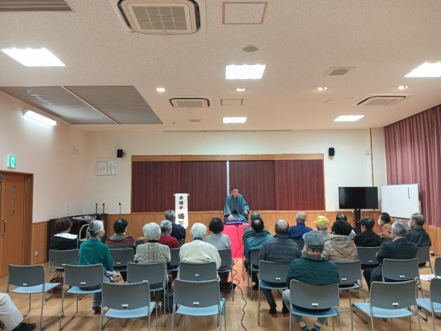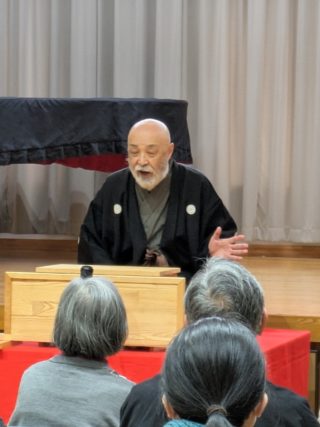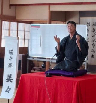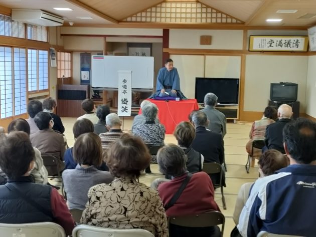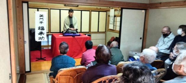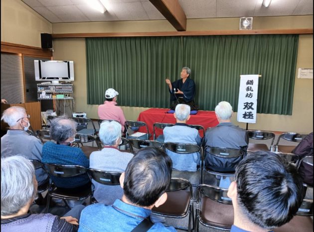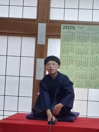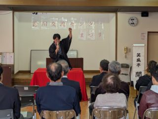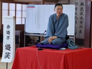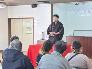 トリは遊笑さんです!おなじみ寅さんの啖呵売でお客さん方の心を一つにしておられました。実は、若い年代のお客様が多かった今回の落語会。やはり教員時代の経験が生きるのでしょうか。授業のようなスタイルで「客席」という名の学級をまとめておられました。あの手この手で独自のリズムを作り、繰り出されるは「六尺棒」!これまた古典派で難しい芸ですが、確かな笑いの勘所を押さえ、客席を爆笑に導きました!