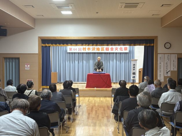 この村木沢地区総合文化祭は、村木沢および近辺の地区と共同で、地域おこしも意識して開催されているとのこと。会場には様々な年代の方が集まって賑やかでした。地域の活性化に向けて、たくさんの試みをされている皆さまの活力には感服いたします。落語も皆さまの活動にお役に立てれれば、本当に嬉しいです。これからもぜひお付き合いいただきたいなと思います。