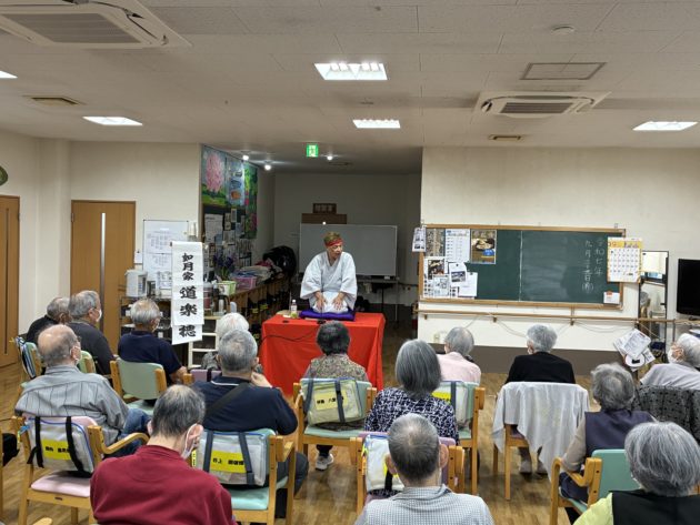 ようやく暑さが和らぎ、食欲、行楽、芸術の秋等の季節となり、目黒のサンマや落語も旬を迎えたような心持ちになっております。9月29日、介護事業を全国展開されているツクイ山形東青田様にお招き頂き、如月家道楽さんと頭垂亭稲穂の二人でお伺い致しました。駐車場に到着した時から、利用者様から窓越しに熱い視線を送って頂き、落語を思い存分お楽しみ頂いたのかと思っております。